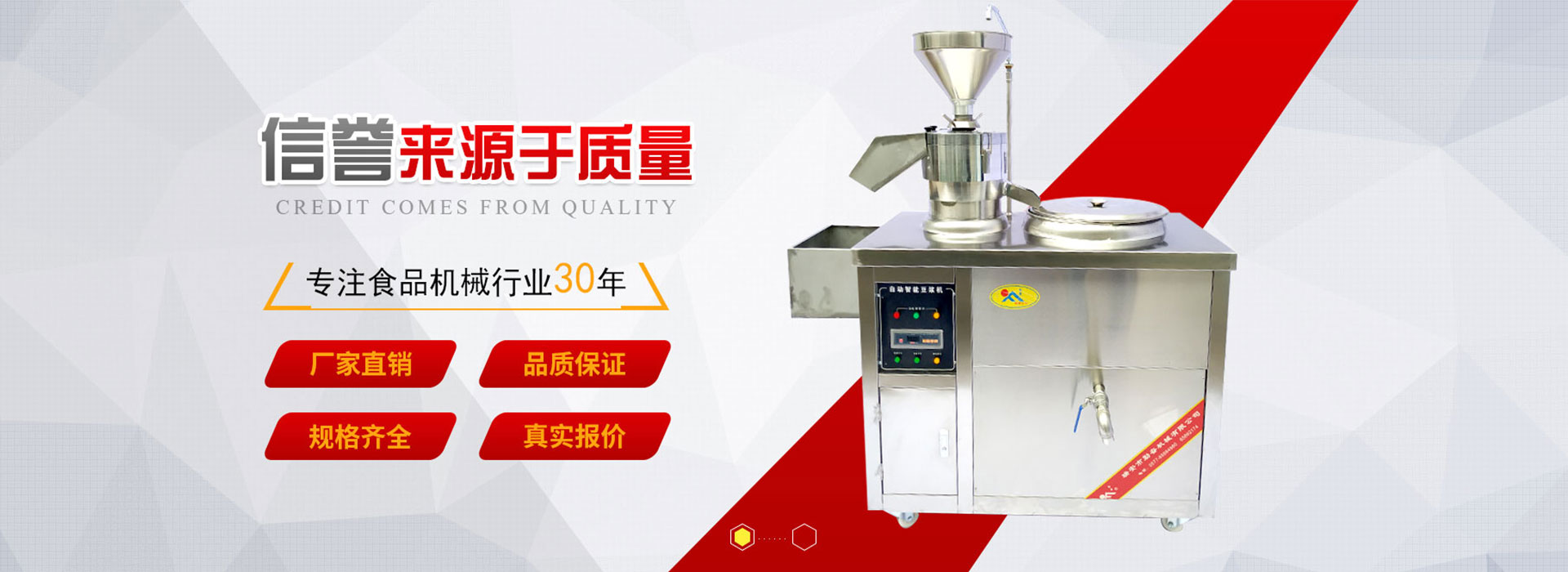 • 公司生產技術力量雄厚,檢測手段先進,主要生產食品機械,均由國家檢測中心技術鑒定為合格產品。